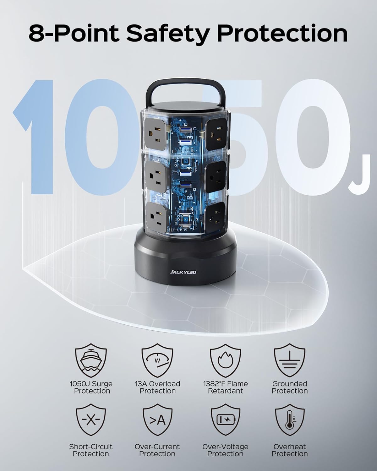 • 1,050 joules of surge protection against dangerous voltage spikes